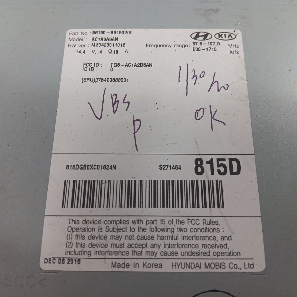 | For a 2018 OPTIMA receiver, US market, w/o navigation, 5.0" screen, ID 96180A8150WK |