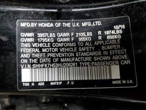 | Donor Vehicle VIN: SHHFK7H53HU206261 | Honda | Civic | 2017 | EX Hatchback 4-Door | 1.5L 1497CC l4 GAS DOHC Turbocharged |